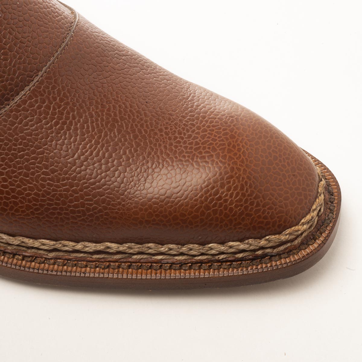 Inspired by the ingenious 19th-century invention of Charles Goodyear, our Goodyear welted shoes represent a pinnacle of shoemaking artistry. In this time-tested method, a strip of supple leather, the "welt," is meticulously hand-stitched first to the insole and the upper, and then separately to the outsole.