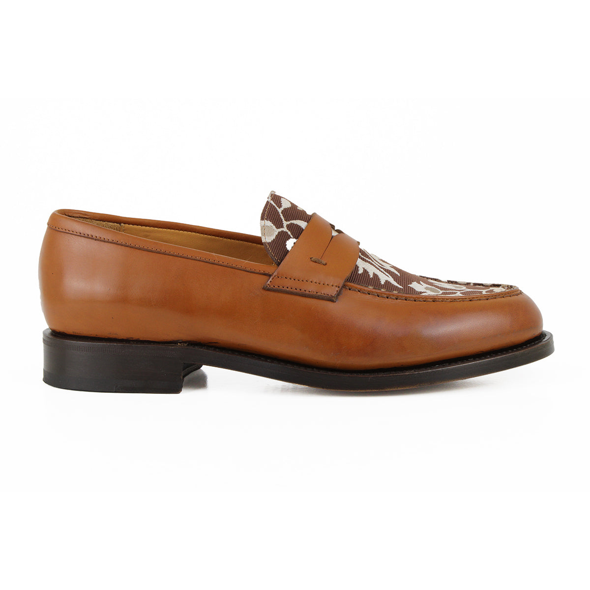 Embrace comfort and class with leather slip-ons. Upper in Kimono silk fabrics and leather sole