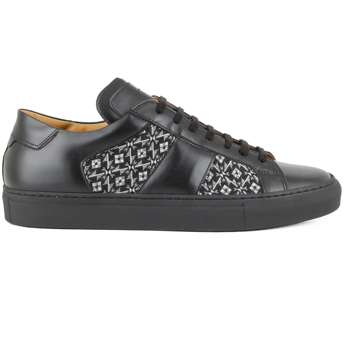 Laced sneaker featuring padded calf leader upper and Kimono silk fabric. Rubber sole