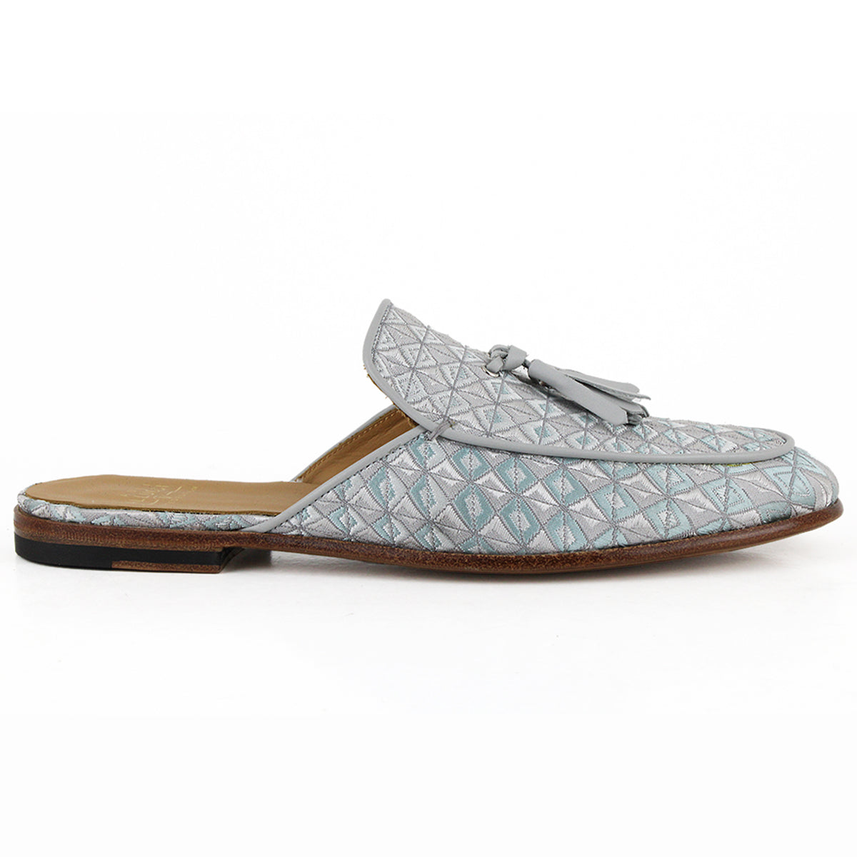 Iconic styles from Gallucci Family archives. Leather calf linen, upper in Kimono silk fabrics and leather sole